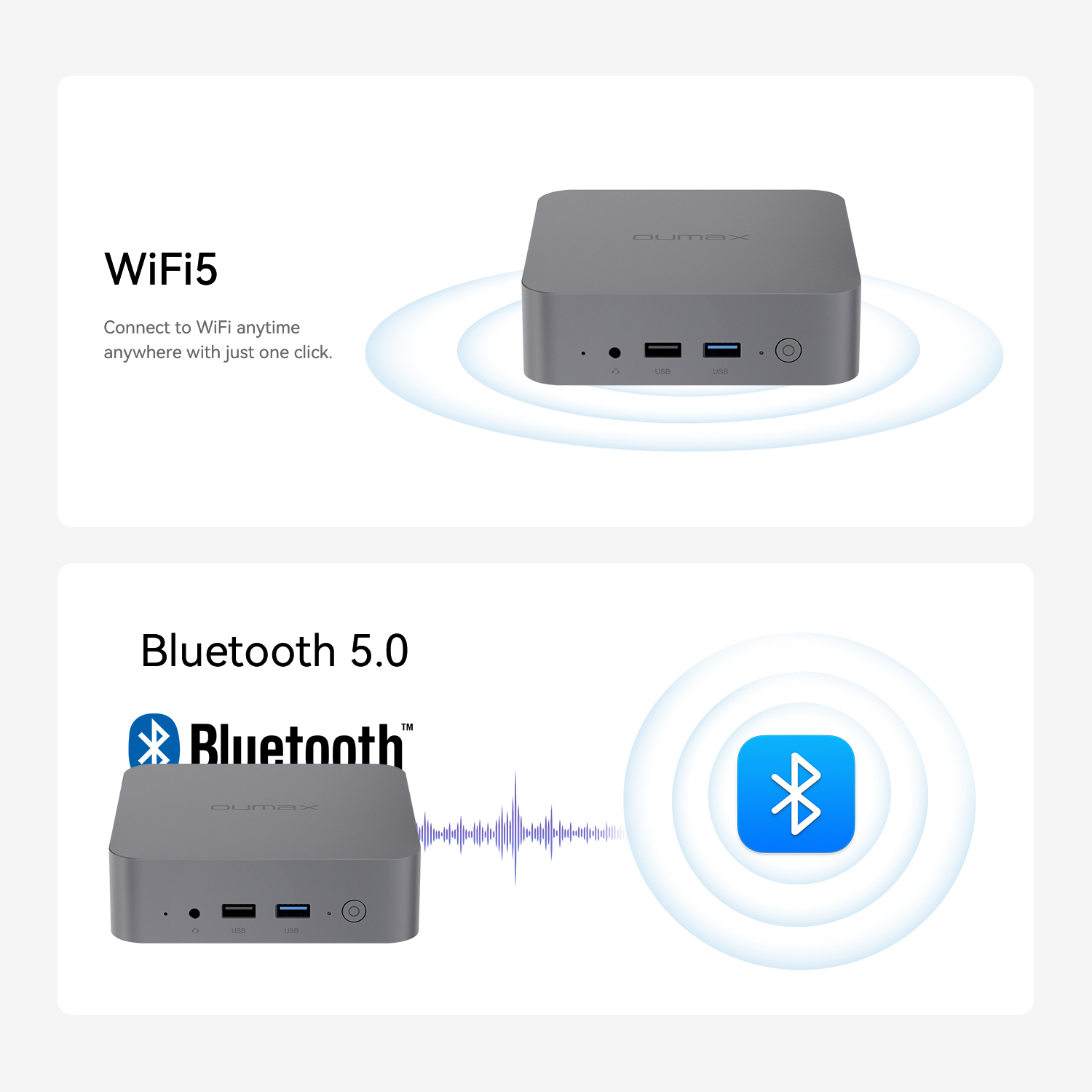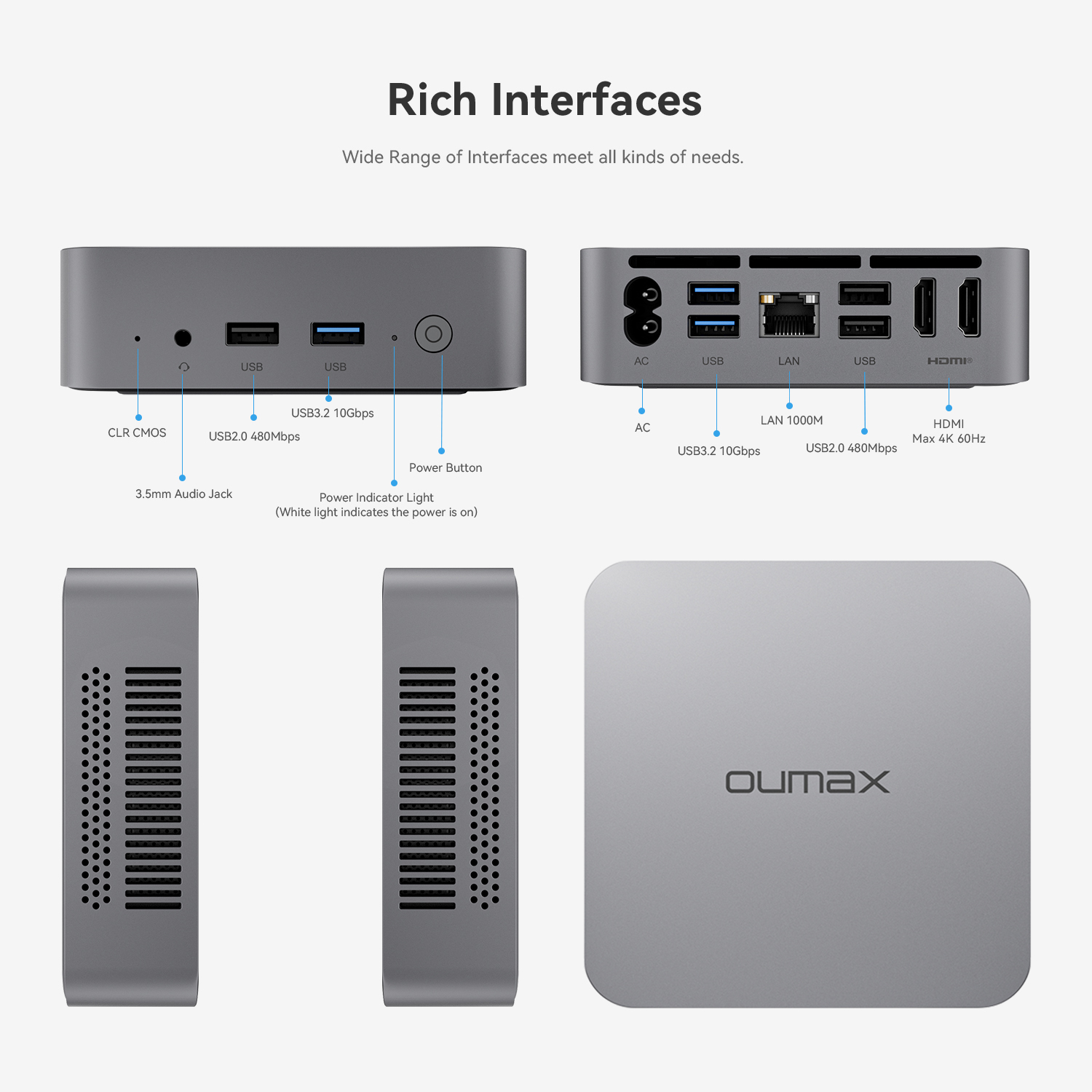 - 【Powerful Performance】:Oumax N95 mini pc is powered by Intel Alder Lake N95 processor(4 Cores 4 Threads, 6MB cache, up to 3.4GHz, 15W TDP), 20% higher performance than Intel N5105. The micro pc create a smooth experience for your streaming video, visual home entertainment, and light office, bid farewell to system stalls and buffering.