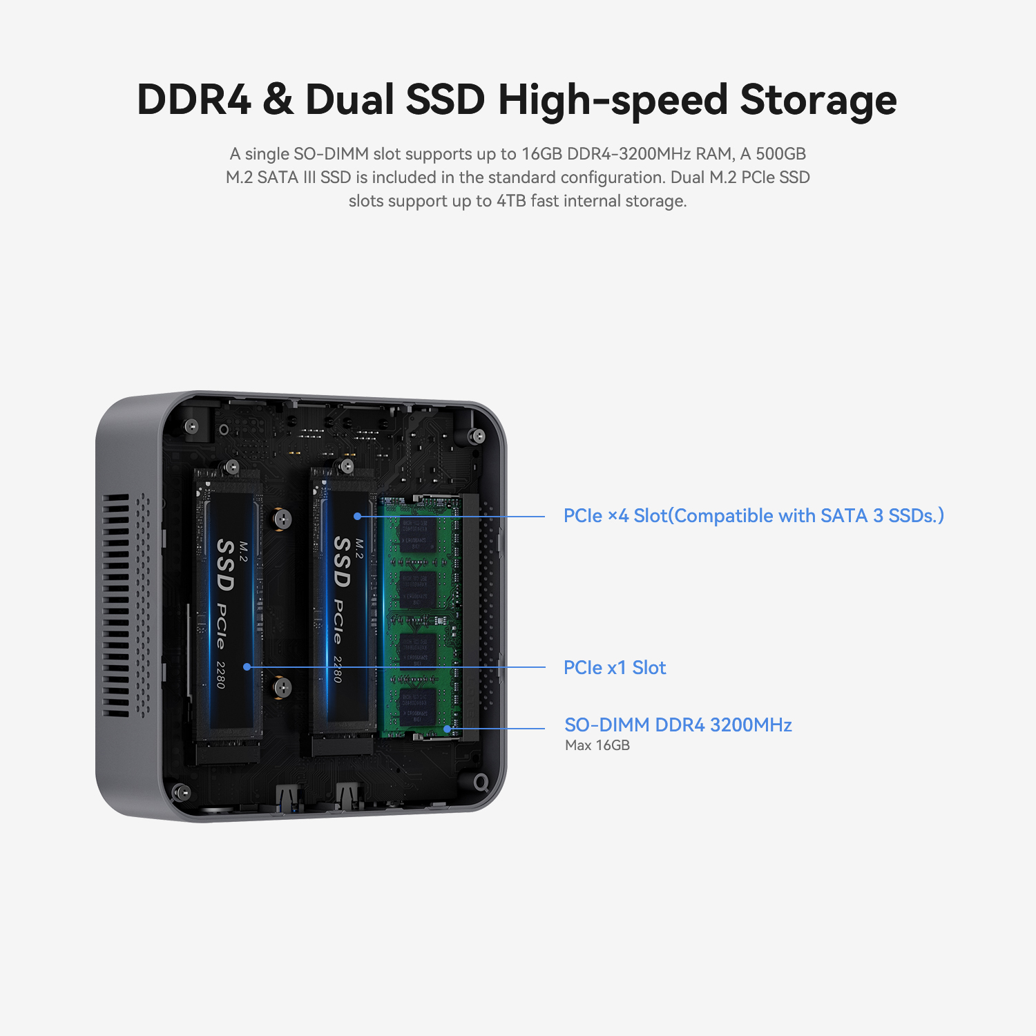 - 【High-capacity Storage】:The micro desktops computer built-in 16GB DDR4, 512GB M.2 SSD. The mini Computer supports upgrading to up to 16GB DDR4 3200MHz and dual M.2 2280 PCIe SSD, and the maximum memory can be expanded to 4TB. Meet your demands for high storage and integrated work and entertainment.