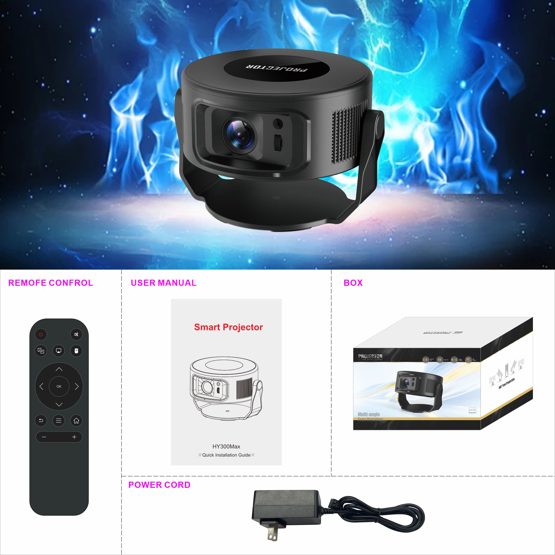 Comes with standard accessories such as the Gif BOX, user manual, power cord, and remote control, ensuring you can start using the projector right away.