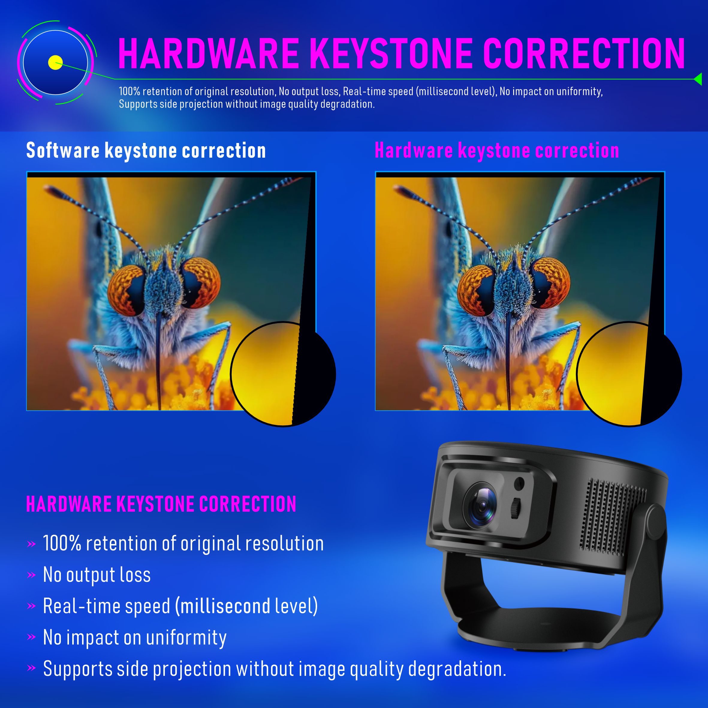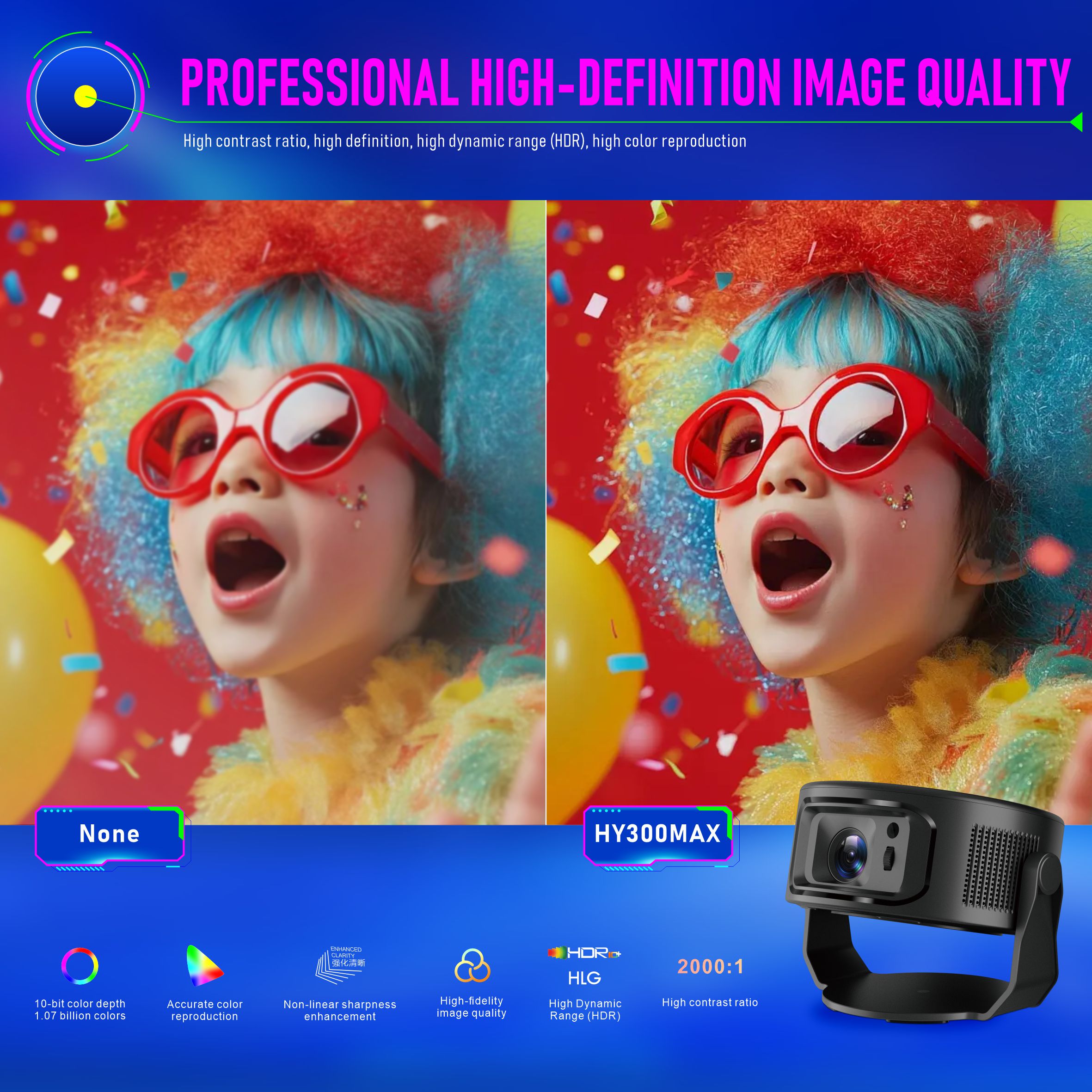 Display Quality: Delivers visuals with a native resolution of 720P. A color temperature of 8000K (±10%) ensures accurate color reproduction, while a 2000:1 contrast ratio enhances image depth.